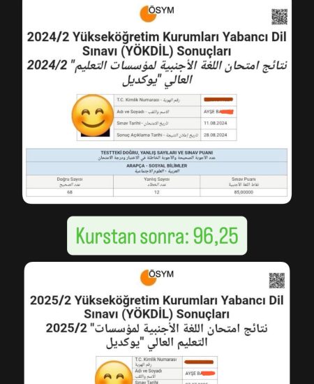 Selamünaleyküm hocam, hayırlı günler diliyorum. YDS' den sonra sizden aldığım kursla alakalı düşündüklerimi sizinle de paylaşmak istedim☺ Öncelikle hocam eğitimle geçen 14 haftalık süreçte bizleri en iyi şekilde sınava hazırlayabilmek adına gösterdiğiniz özveri için çok teşekkür ediyorum.🙏🏻 Gerek kurs içeriği olsun gerek de sizin dersleri işleme şekliniz olsun hepsi çok profesyoneldi, bizlere çok şey kattı hamd olsun. Sınavda da bunu fark ettim çünkü üzerinde durduğunuz harfi cerli fiiller vs çıktı. Özellikle de soru çözme taktikleriniz ile soruları daha rahat çözebildim bu da sınavımın daha verimli geçmesini sağladı. İyi ki bu süreçte sınava sizinle birlikte hazırlanmışım diye düşünüyorum hocam. Bu konuda İhtiyaç duyduğum zaman tekrar size başvuracağım inşallah. Her şey için çok teşekkür ediyorum sağ olun hocam.🙏🏻
