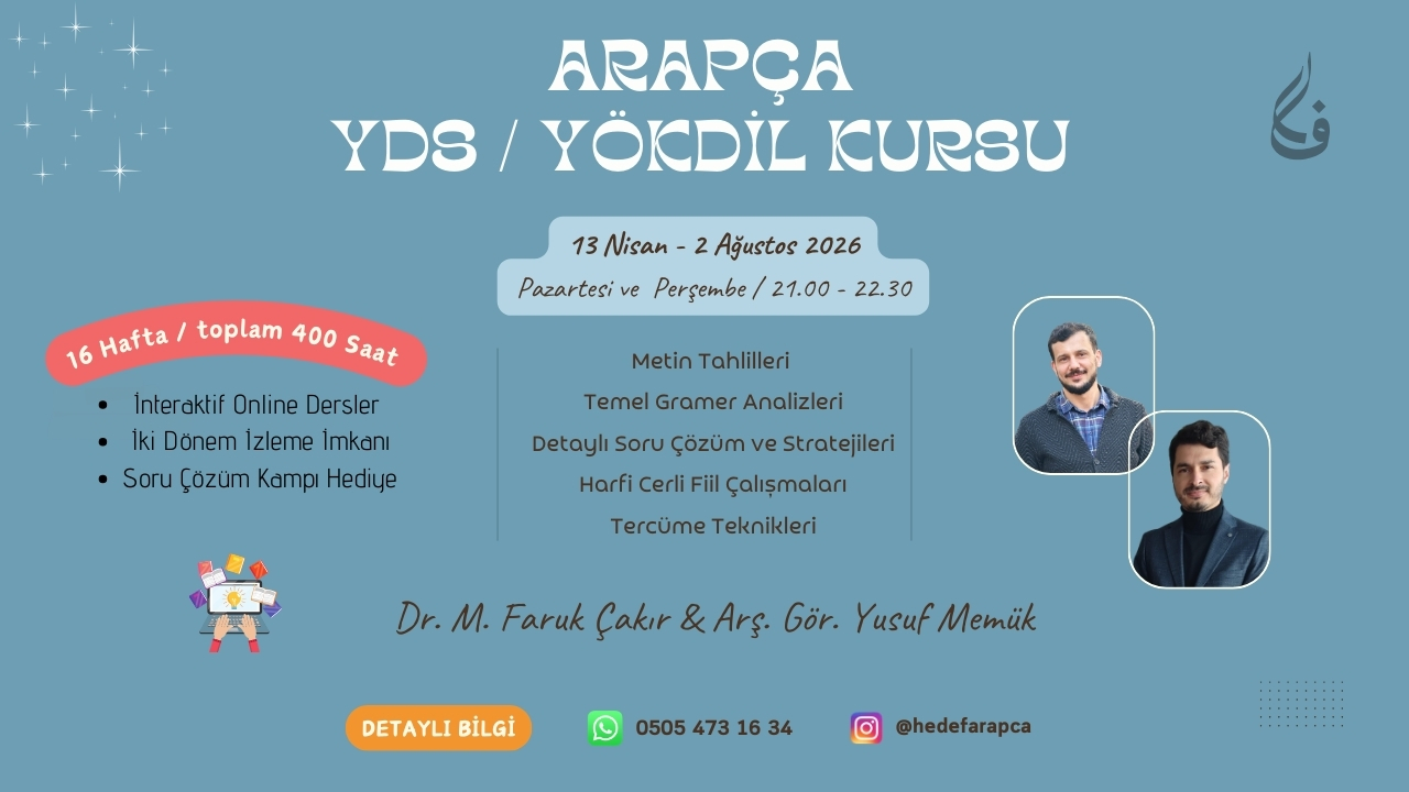 Hocam sınavda Türkçe-Arapça, Arapça-Türkçe çeviriler de okuduğumuz modern metinlerden ezberlediğimiz kelimeler çok fazla vardı işimi baya kolaylaştırdı☺ Ayrıca sınavda Fiil-Harfi Cerr sorularında da ezberlettiğiniz kelimeler kulaklarım da çınladı ve Soru çözümünü oldukça kolaylaştırdı 😊 İlk etapta tereddütle başladığım kursta sayenizde kelime ezberimi artırarak baya ilerleme kaydettim 😊 Ders konusunda gösterdiğiniz ilgi ve destek için Allah razı olsun hocam ☺